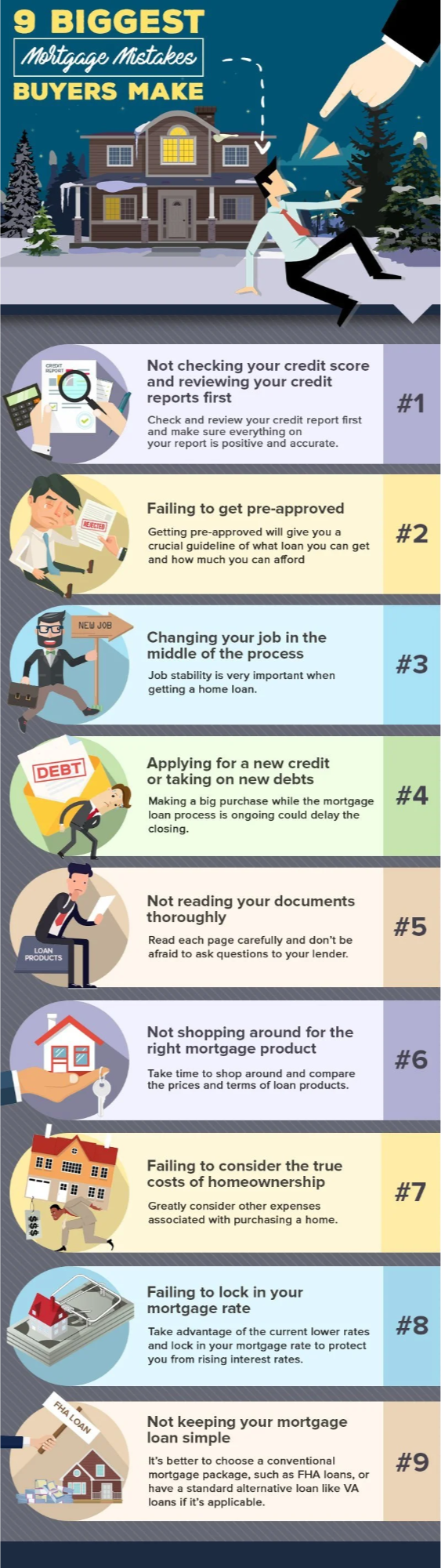 Here are nine of the most common mortgage blunders that buyers make. Make sure you think about how you could avoid them for you to have a pleasant and meaningful home buying experience.