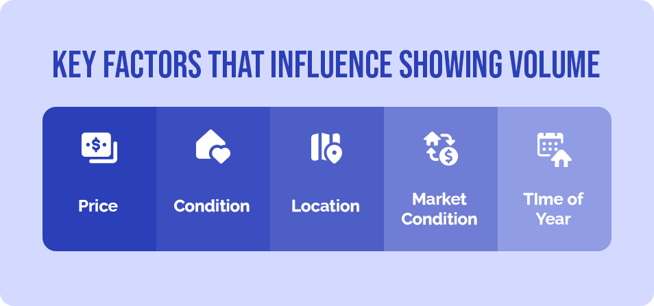 However, you could get just a handful of showings on your home and receive multiple offers. Or, your home could be on the market for weeks or months before it goes under contract. This is because showing volume can vary widely based on a number of factors: price, location, your home’s condition and how desirable it is, market conditions, as well as the time of the year.
